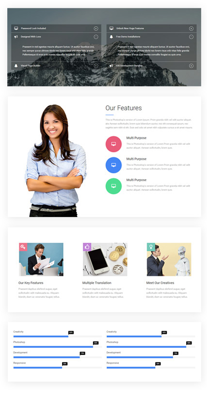Our designers and developers did everything possible to enable you with a mind-blowing set of components, which includes forms, galleries, accordions, tabs, popups, and more