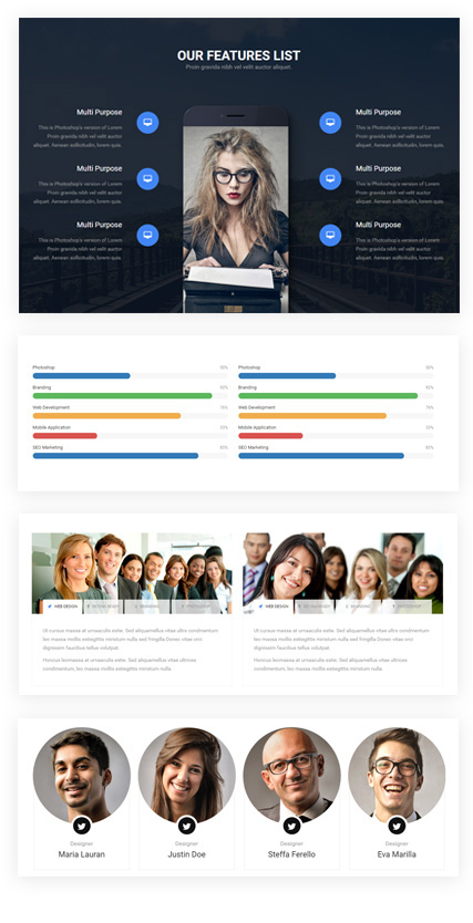 We included sliders, carousels, headers, boxes, maps and much more
